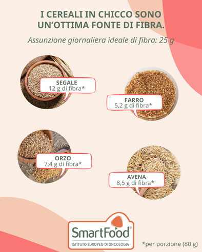 Una porzione di farro decorticato apporta circa un quinto della fibra giornaliera consigliata dalla Società Italiana di Nutrizione Umana.