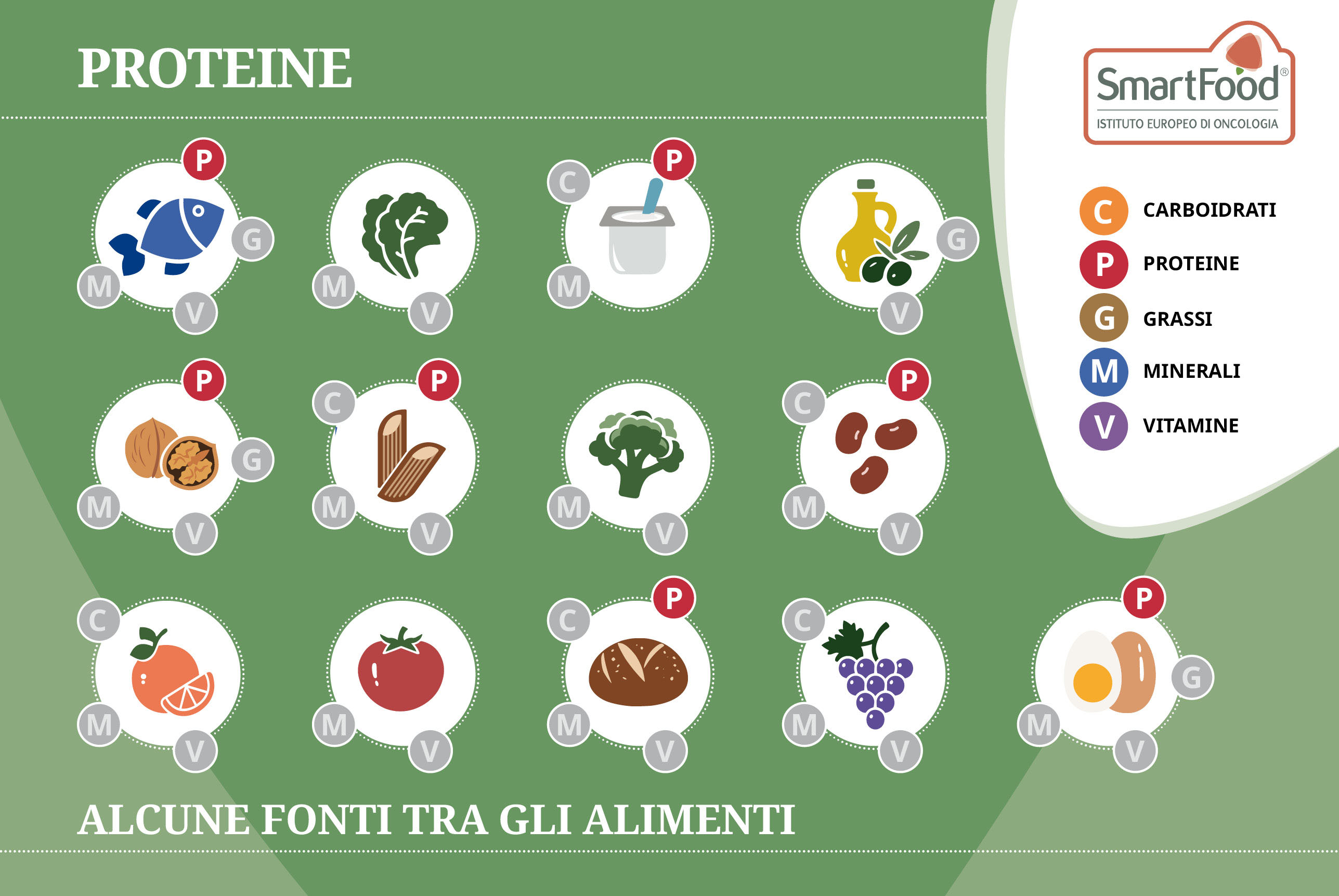Le proteine sono macronutrienti, insieme a carboidrati e grassi. Sono presenti sia nei prodotti di origine animale che vegetale e forniscono all'organismo aminoacidi per svolgere numerose funzioni. Una volta ingerite, le proteine sono scomposte nei singoli aminoacidi che vengono poi assorbiti dall‘intestino tenue ed utilizzati prevalentemente per la sintesi proteica, ossia per la costruzione di nuove proteine.
