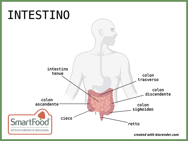 Dal punto di vista anatomico, l'intestino è un tubo lungo circa sette metri, con una superficie interna di circa 300 metri quadrati. È suddiviso in due parti principali: intestino tenue ed intestino crasso.