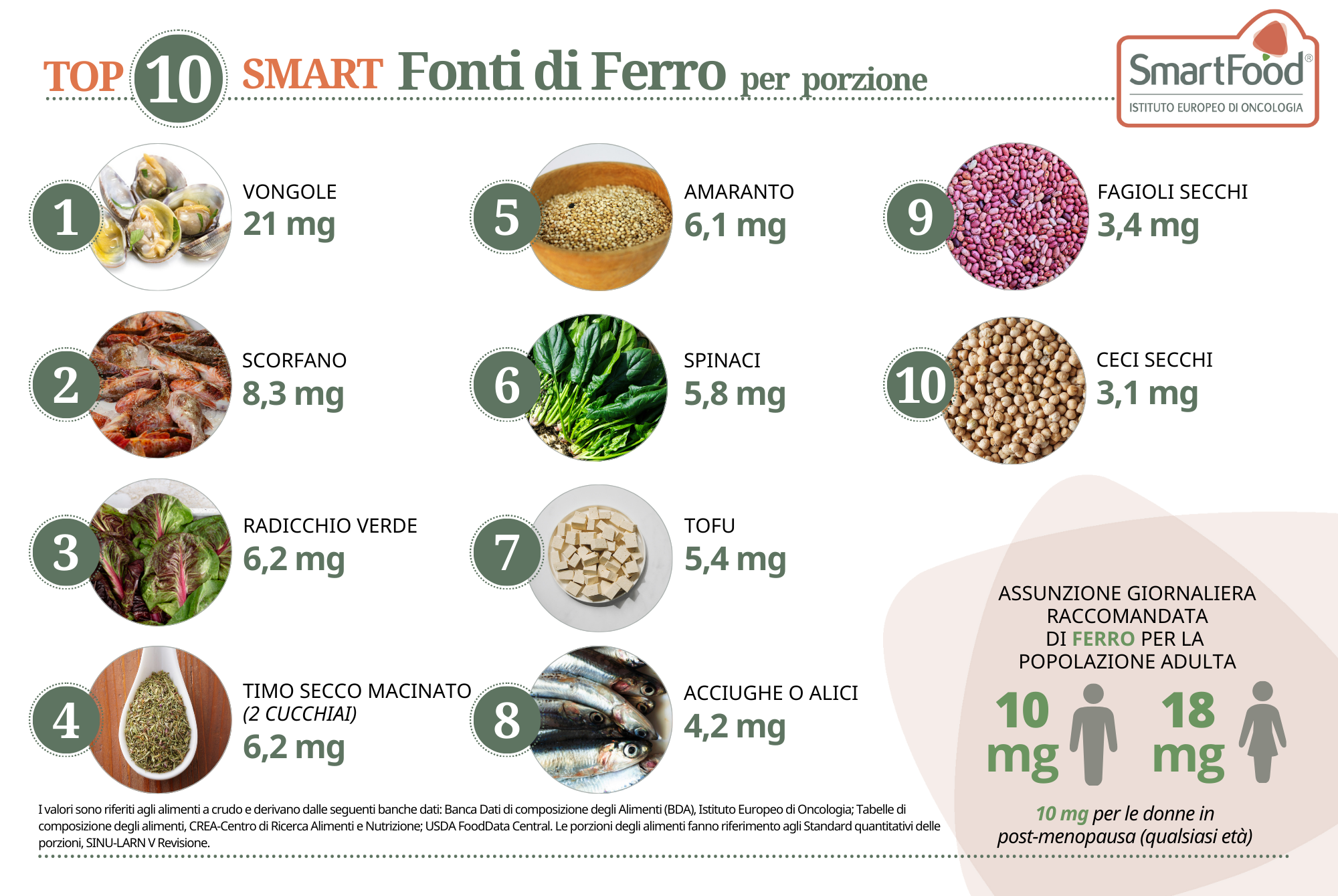 Fabbisogni giornalieri raccomandati di minerali