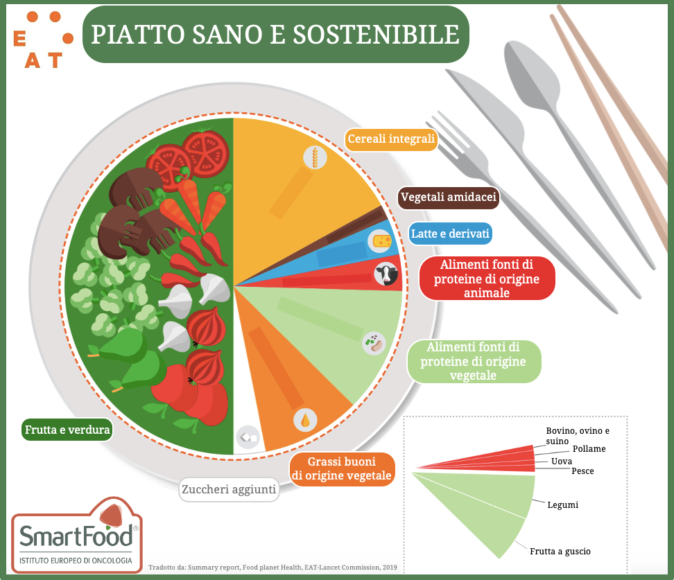 Per comprendere al meglio il modello della dieta sostenibile, il gruppo di lavoro di Eat-Lancet, ha ideato il piatto sano e sostenibile.