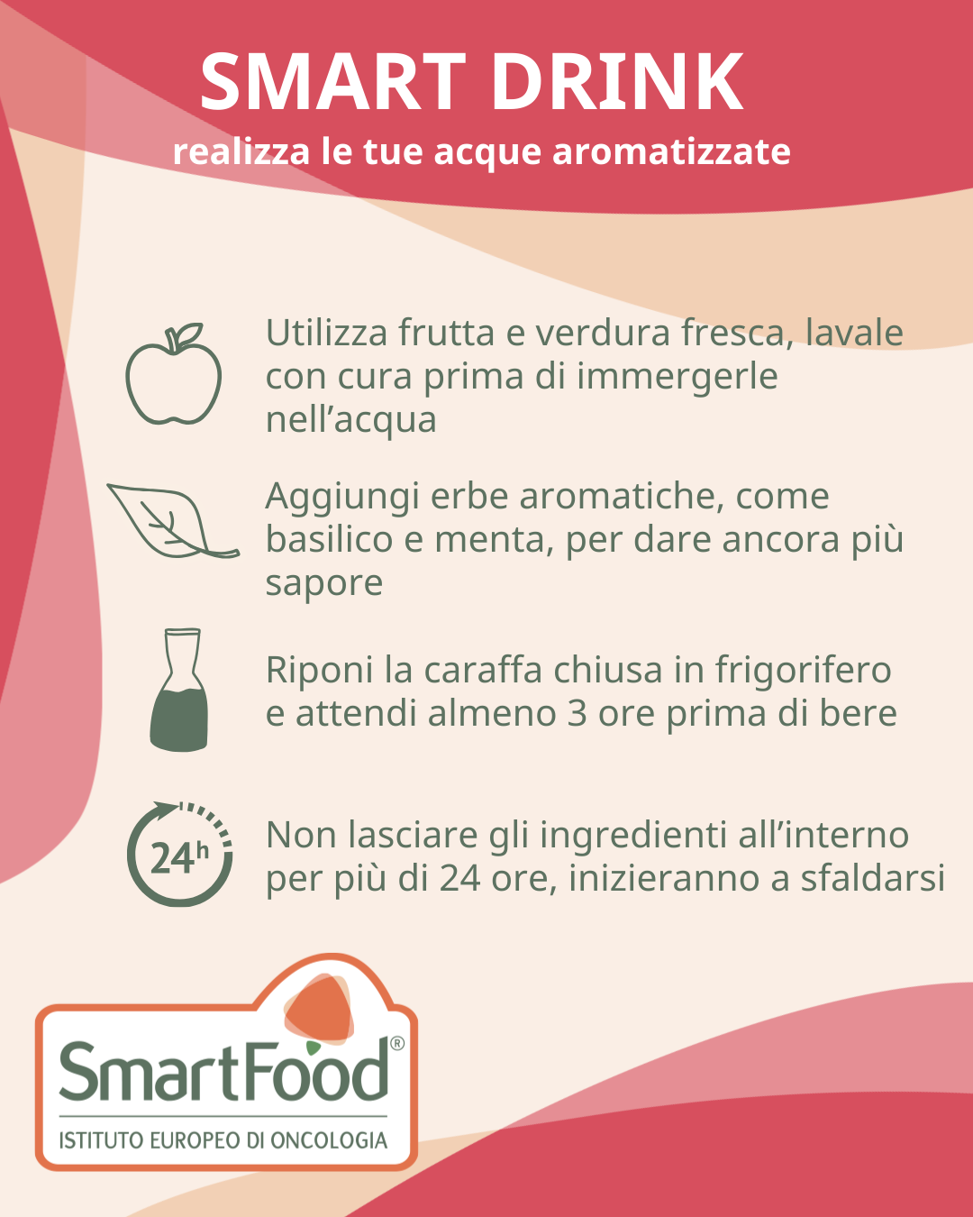 - Evita succhi di frutta e bevande con aggiunta di zuccheri e sostituiscili con spremute fresche o acque aromatizzate fatte in casa!