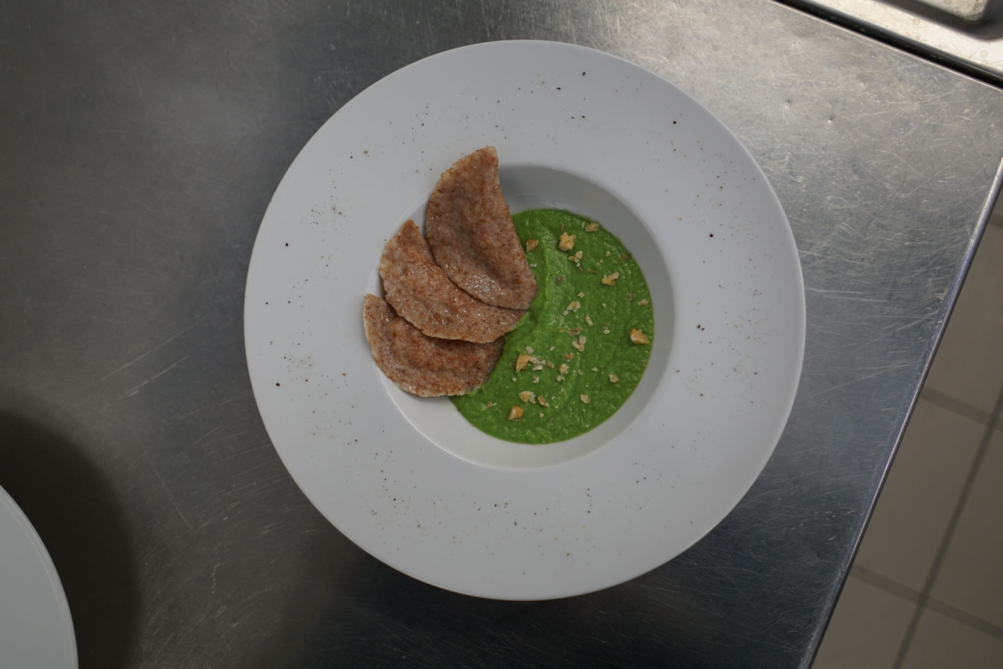 - Tritare le noci, il rosmarino, la salvia, l’aglio e un pizzico di sale.