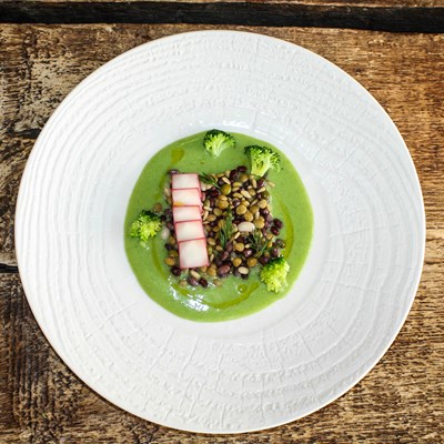 Questa ricetta, realizzata dallo chef Franco Aliberti, nasce dalla collaborazione tra Smartfood e AMìO-Legumi che insieme hanno sviluppato la linea di zuppe a base di legumi e cereali ZuppamiXlegumi (ora Nutrigood Mix). Ciascun mix è un’equilibrata combinazione di carboidrati e proteine, che rappresenta la base per il Piatto Sano, un pasto completo e salutare con tutti gli aminoacidi essenziali. Protagonista della ricetta “Che cavolo è” è il mix ZuppamiXlegumi e Farro che oltre a questo cereale contiene lenticchie, adzuki rossi e verdi, piselli.