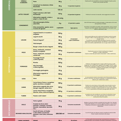 - Il fabbisogno calorico va calcolato e adattato in base a diversi fattori quali l’età, il sesso, lo stile di vita e l’attività fisica della persona, e suddiviso nella giornata in base alle necessità nutrizionali di ognuno.