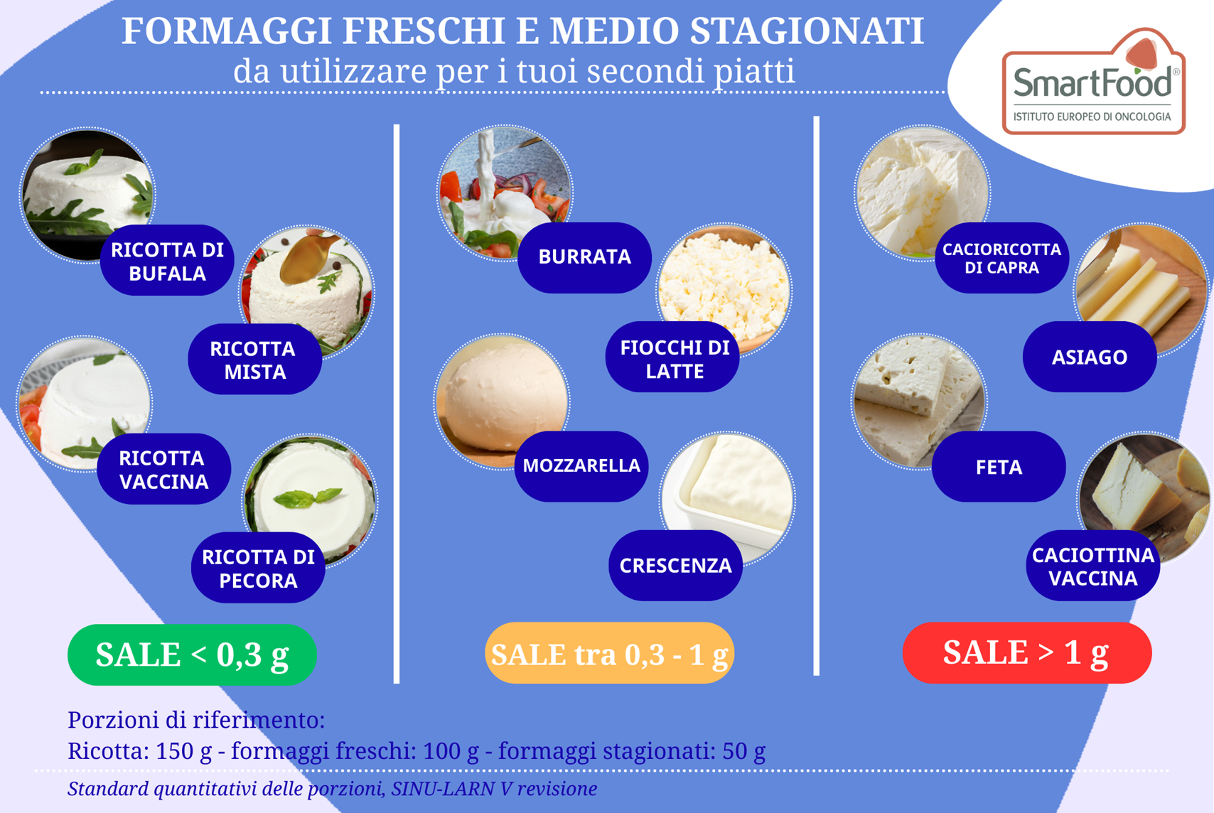 Nella scelta dei formaggi da utilizzare per la preparazione dei propri pasti è bene, quindi, porre attenzione anche alla quantità di sale in essi presente.