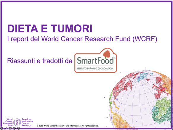 In questa sezione il team Smartfood traduce e riassume i report del Fondo Mondiale per la Ricerca sul Cancro (World Cancer Research Fund -WCRF-) sui principali fattori legati allo stile di vita che possono influenzare, positivamente o negativamente, il rischio di cancro.