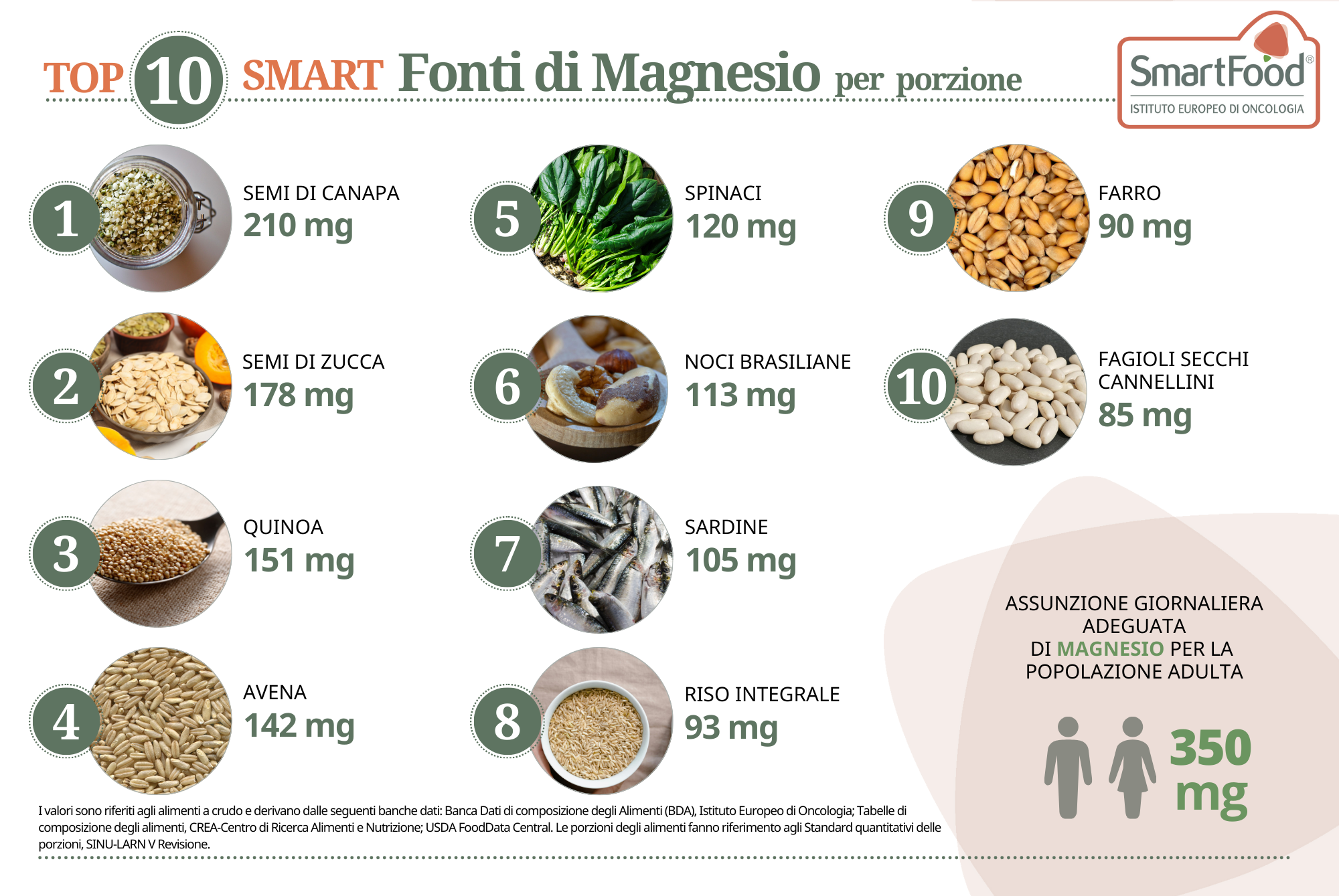 Clicca sopra le immagini per scoprire di più sulle alcuni minerali: in che alimenti sono maggiormente presenti, come assorbirli meglio e tante altre curiosità.