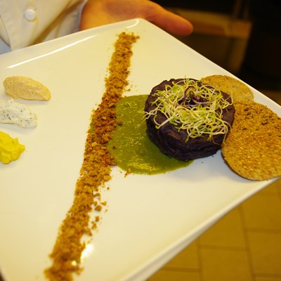 - Spalmare sui crostini di pane le creme ai legumi utilizzando 4 fette di pane per ogni tipo di crema ottenuta.