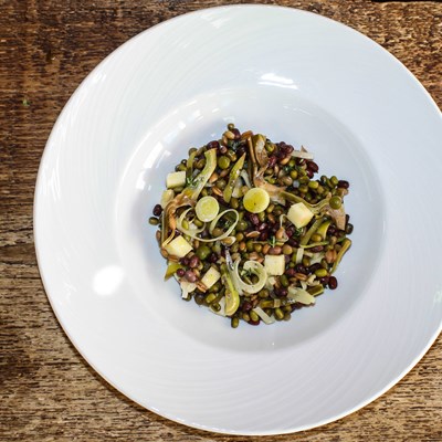 - Cuocere, in acqua aromatizzata con zenzero e alloro, gli ingredienti in quest’ordine: fagiolini, carote e funghi. Terminata la cottura, scolare e adagiare le verdure sul piatto in cui è già stata versata la ZuppamiXlegumi.