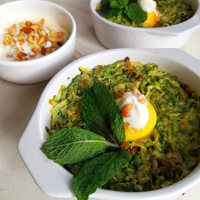 Questa ricetta rappresenta un secondo piatto, da completare con qualche fetta di pane integrale. Sebbene le verdure presenti nella preparazione coprano già la porzione consigliata, è possibile aggiungere al pane un’insalata o dei pomodori. Per completare il pasto sarà sufficiente concludere con un frutto fresco. La salsa allo yogurt può diventare un condimento alternativo e fresco per un’insalata o essere arricchita a piacere con altre erbe aromatiche come il basilico o l’erba cipollina da servire come pinzimonio durante un aperitivo.